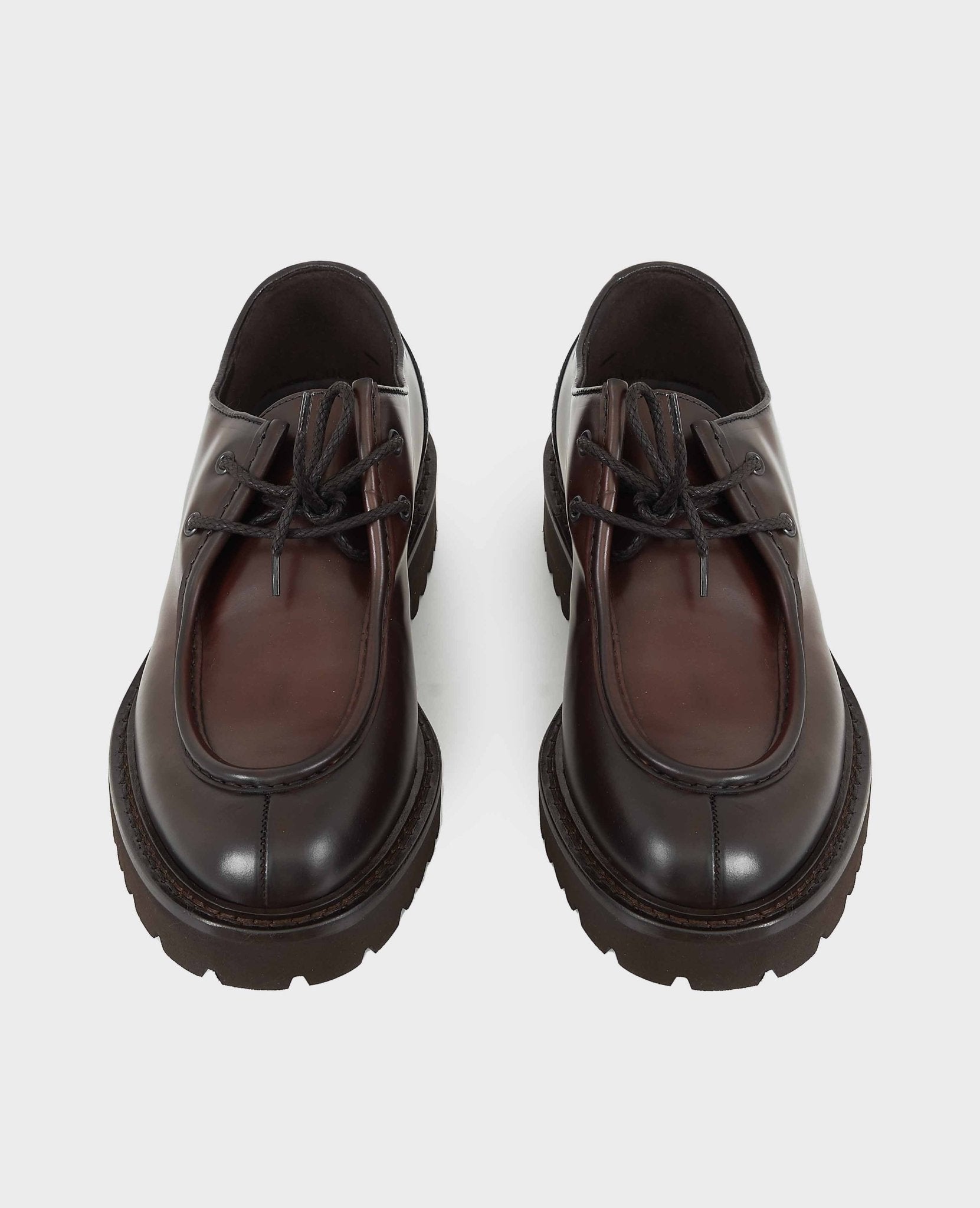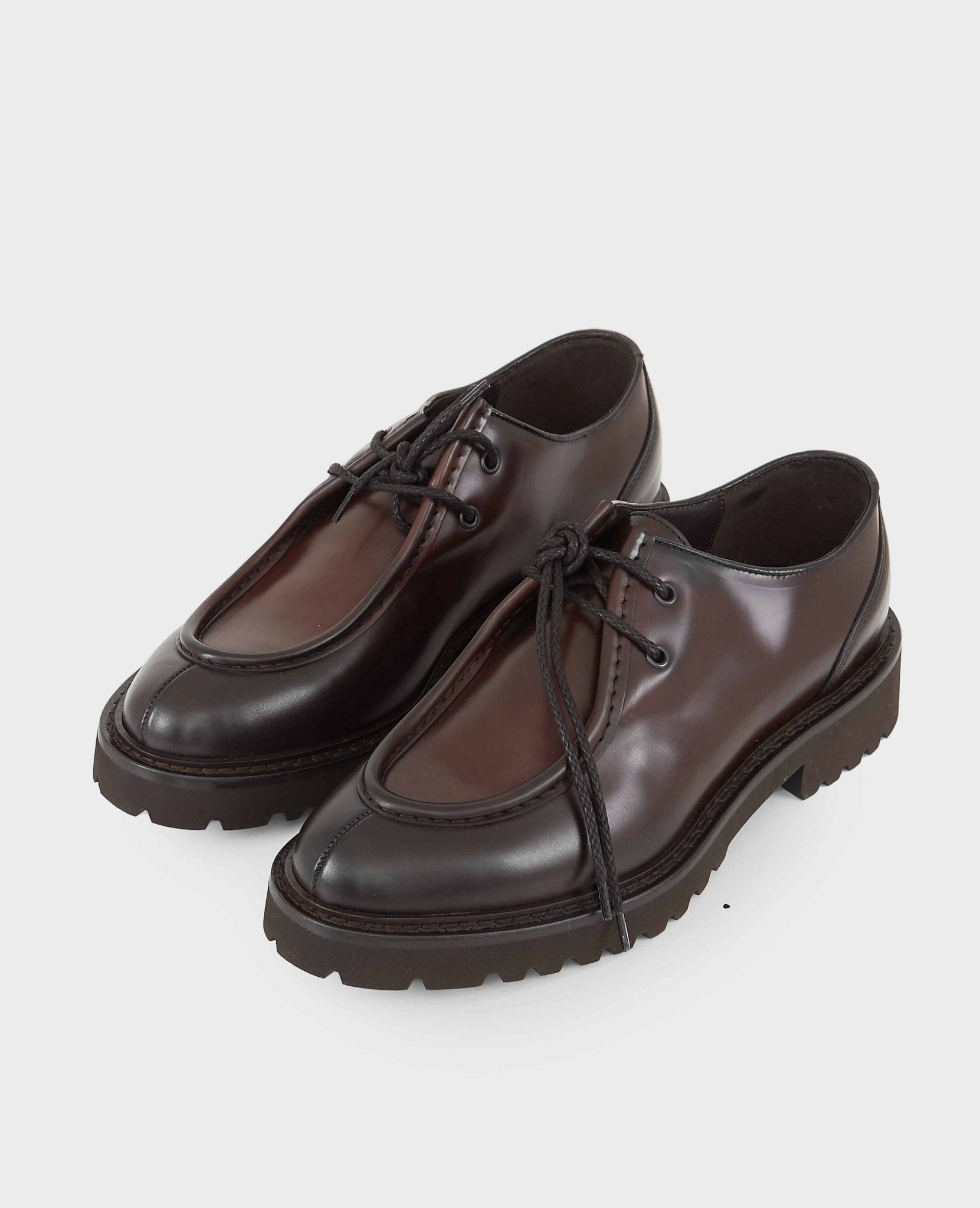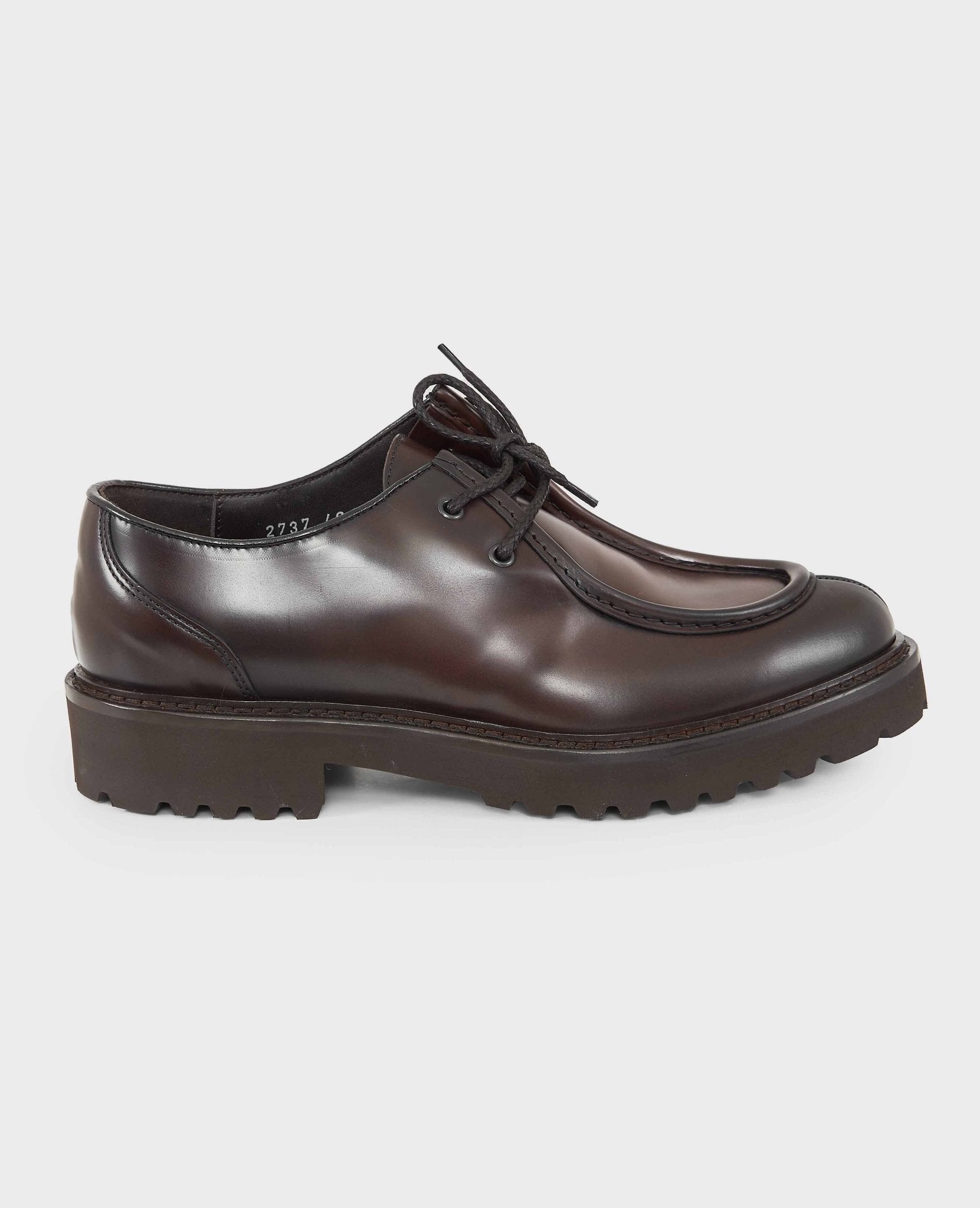 Stringata 100% Made in Italy in pelle con fondo in gomma. Chiusura con lacci tono su tono. Punta arrotondata e suola in gomma. Fatte a mano in Italia.
