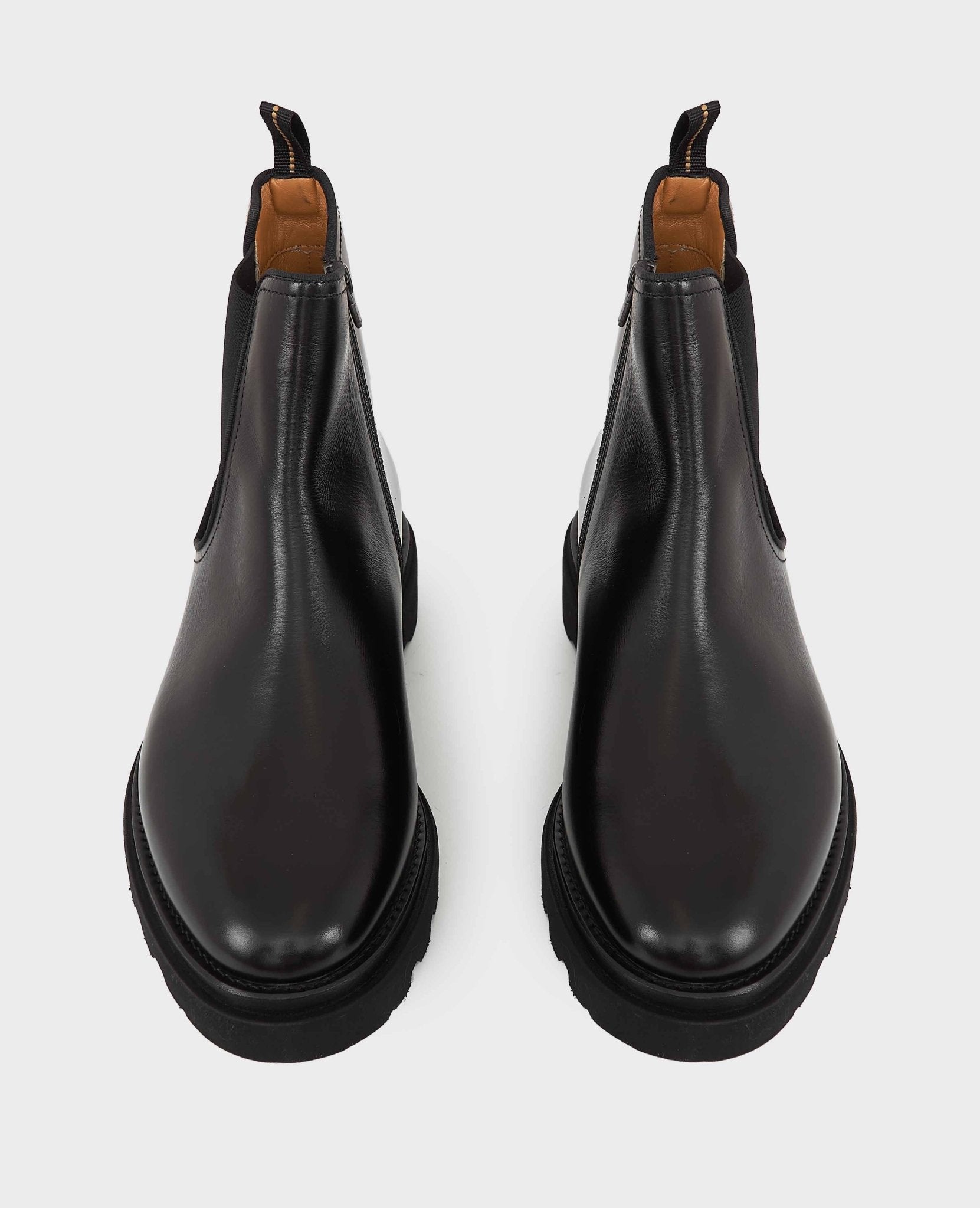 Tomaia in pelle di vitello, fondo in gomma.