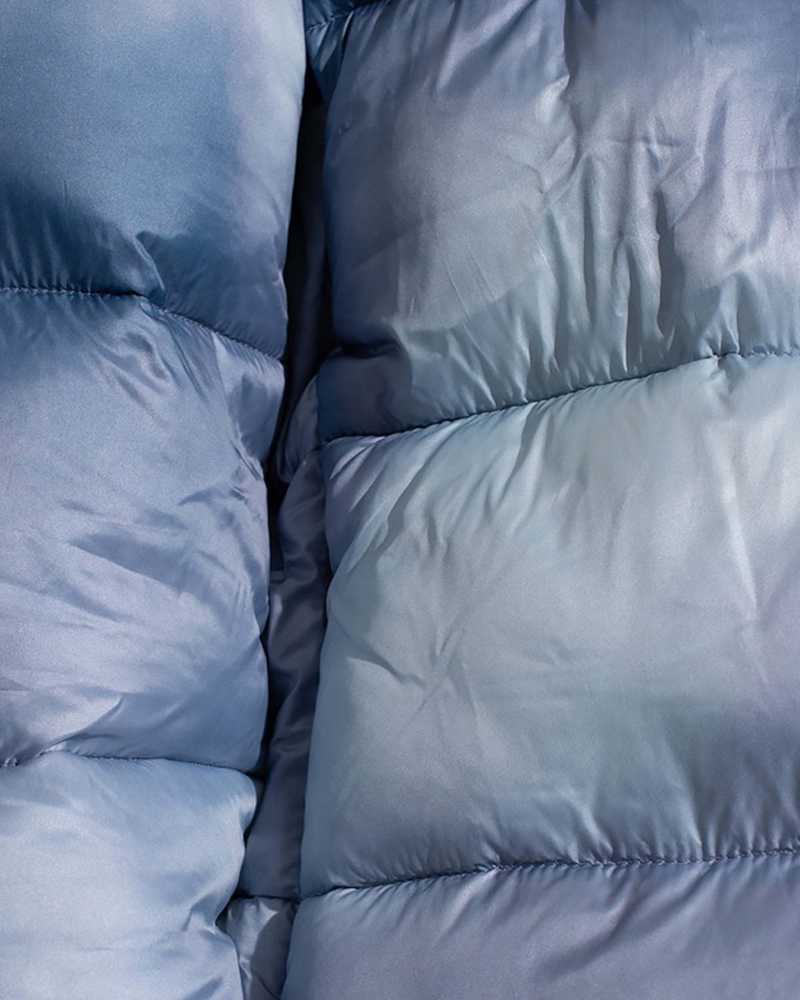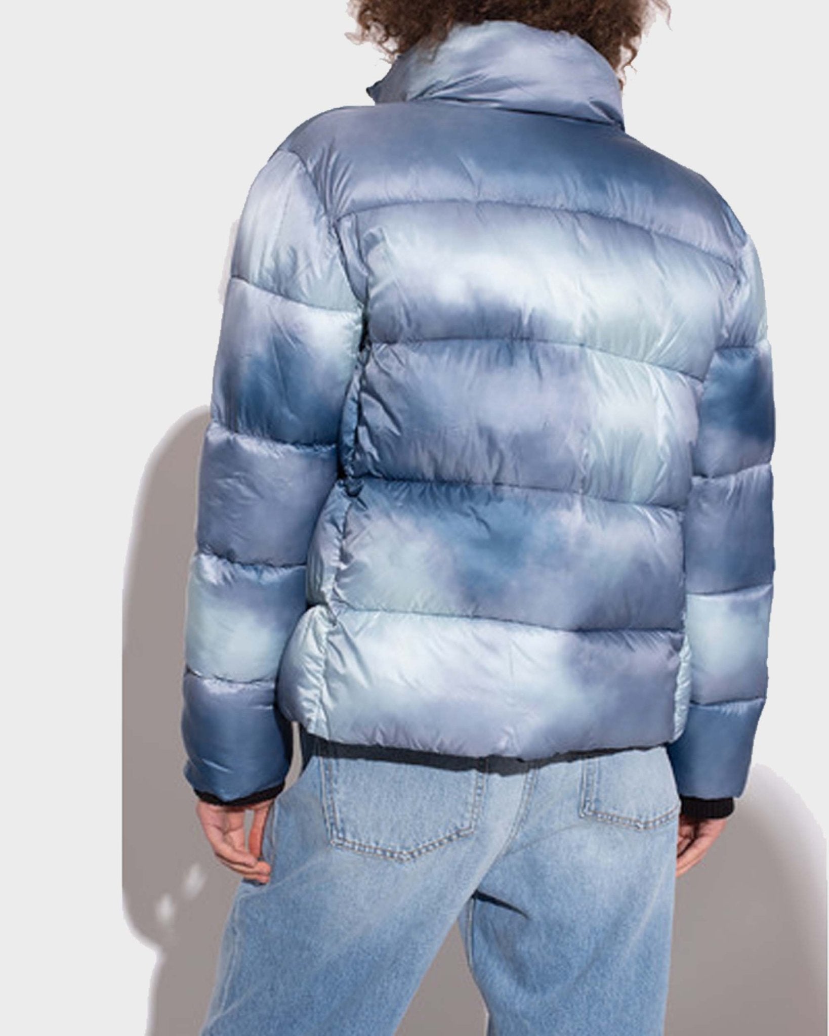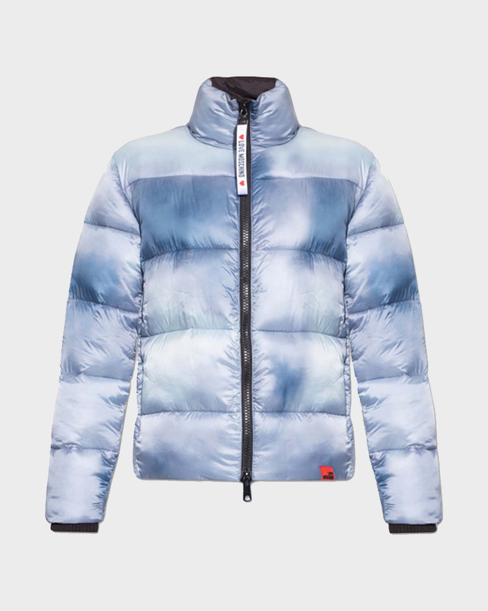 Piumino con collo alto, chiusura con zip, due tasche laterali con zip, patch logo rosso e nero e maniche lunghe con polsini a costine.
