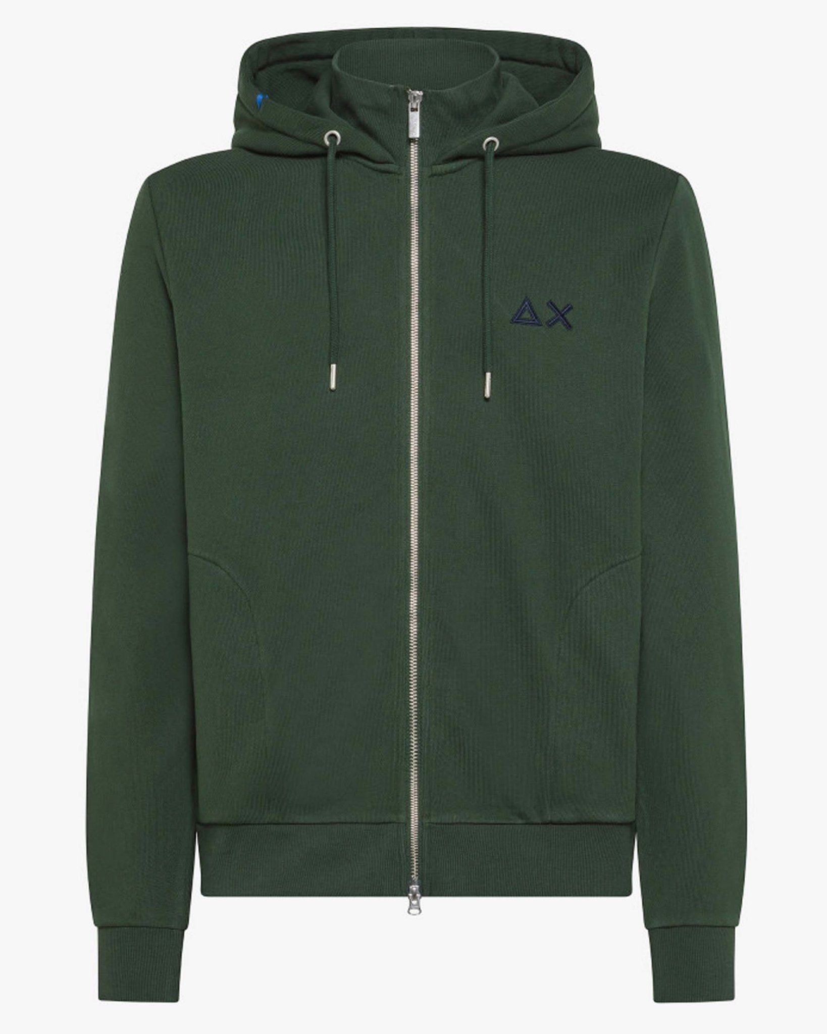 Collo "alto", cappuccio regolabile, chiusura full zip doppio cursore e logo SUN68 cucito sul petto. Vita e polsini elasticizzati a costine. Composizione: 100% Cotone.