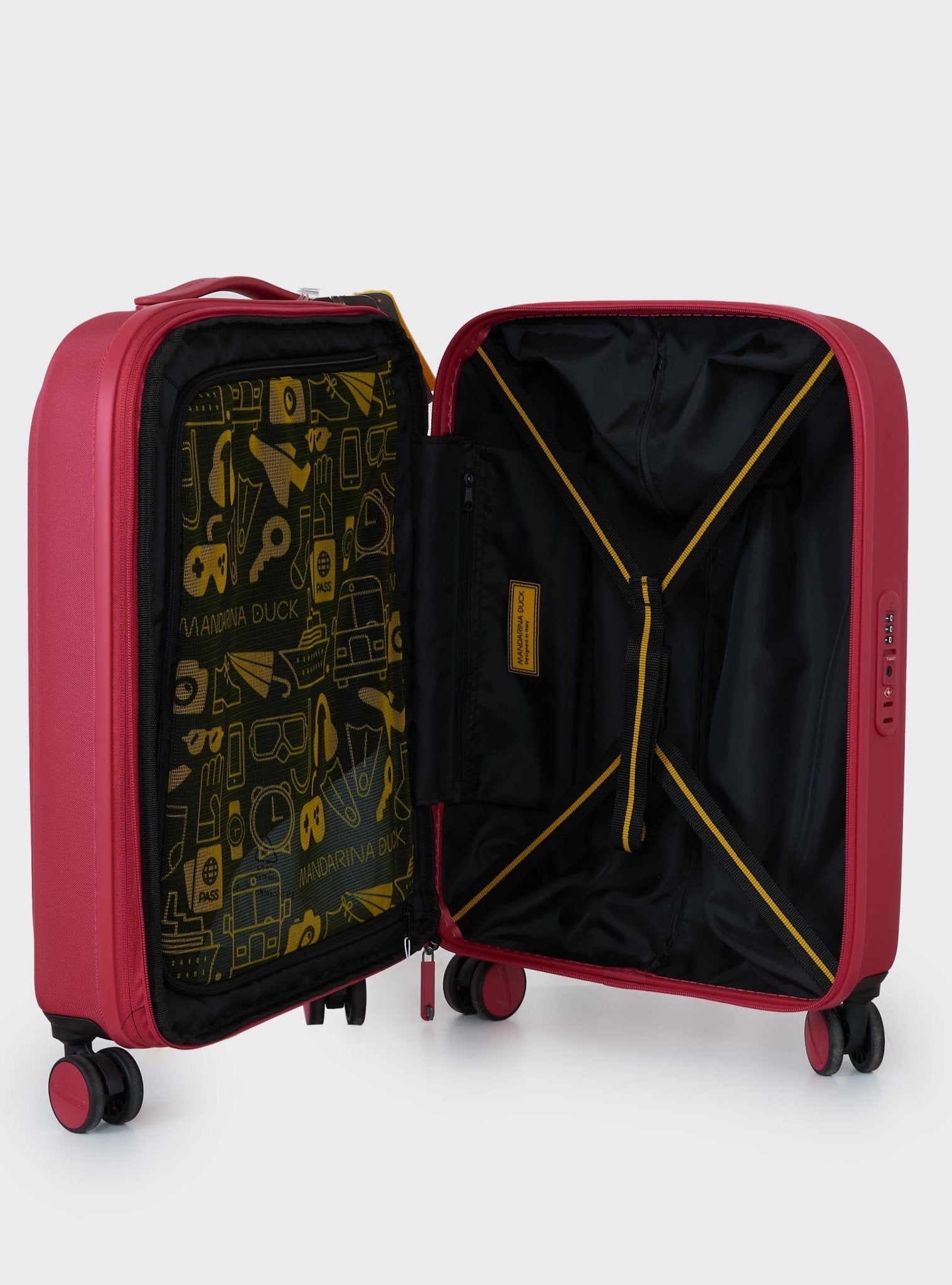 Rigido, compatto, in policarbonato, è il perfetto bagaglio da cabina con quattro doppie ruote e il tsa lock su lato.