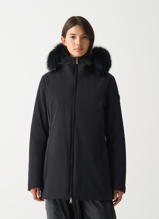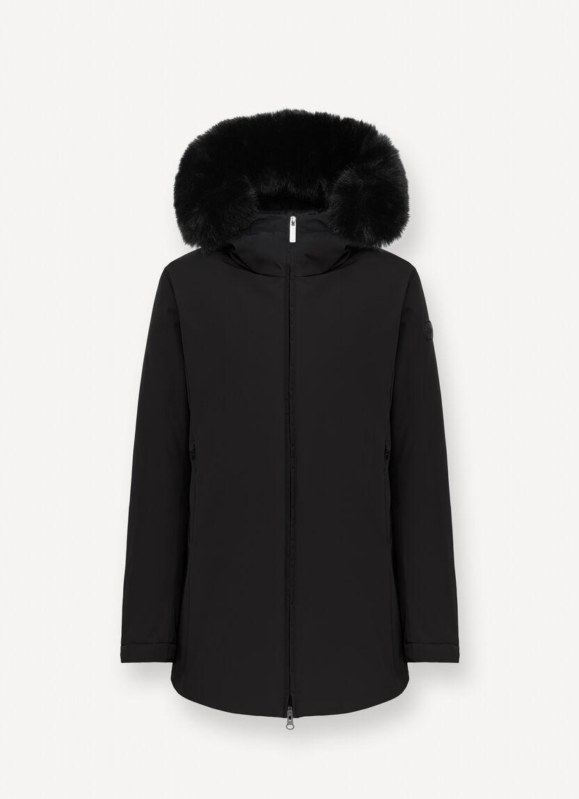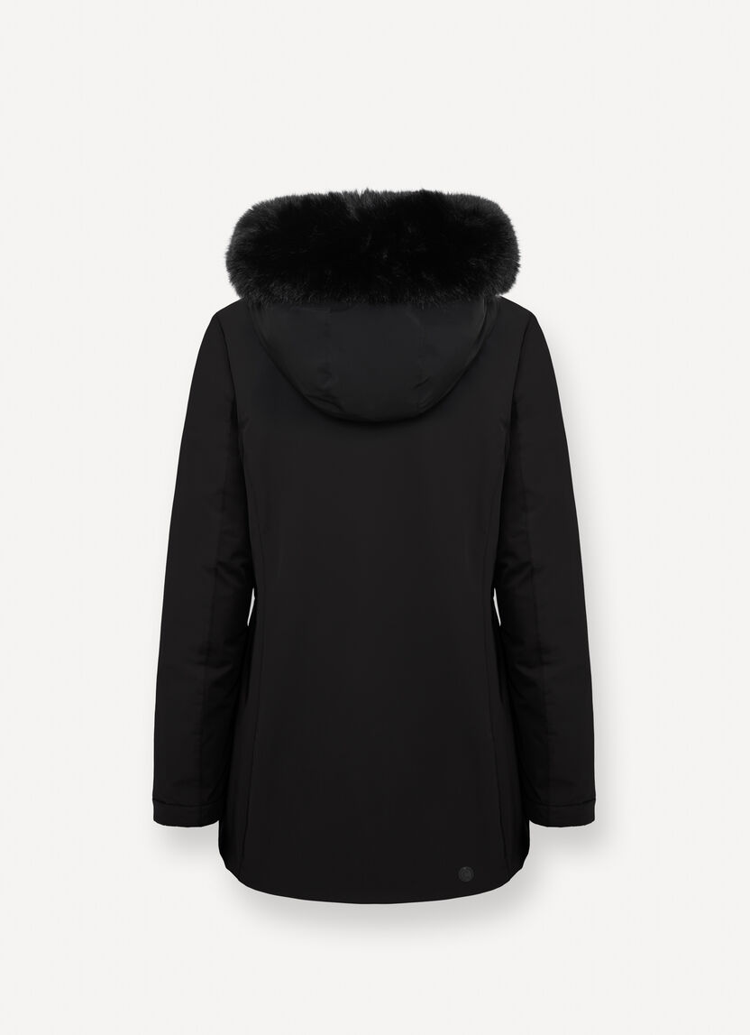 - Cappuccio fisso con coulisse di regolazione e pelliccia sintetica
