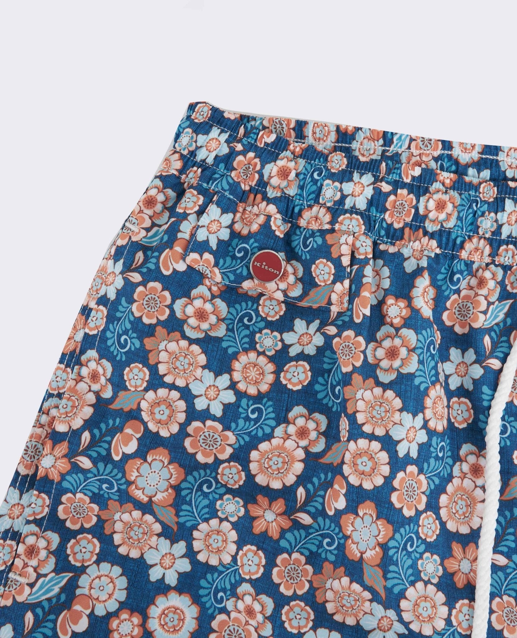 Front pocket with red Kiton button and back pocket with stitched logo.