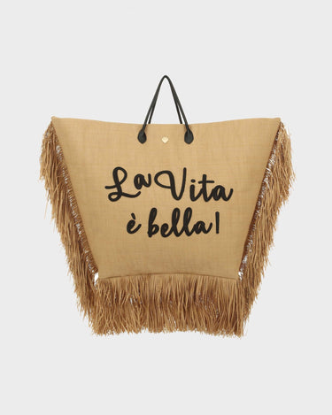 Borsetta in paglia Le Pandorine Modello Vita Bag con frange.