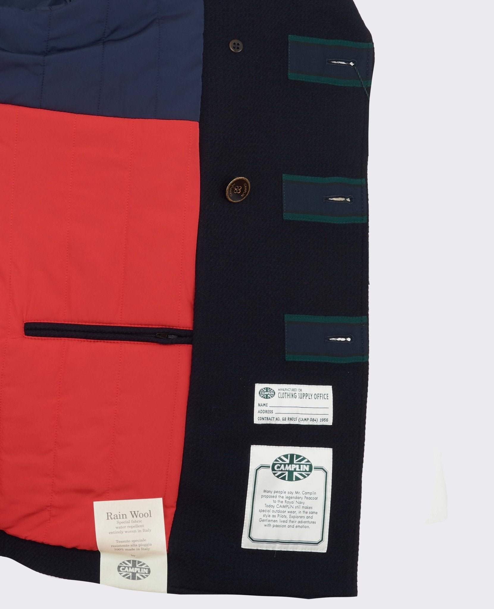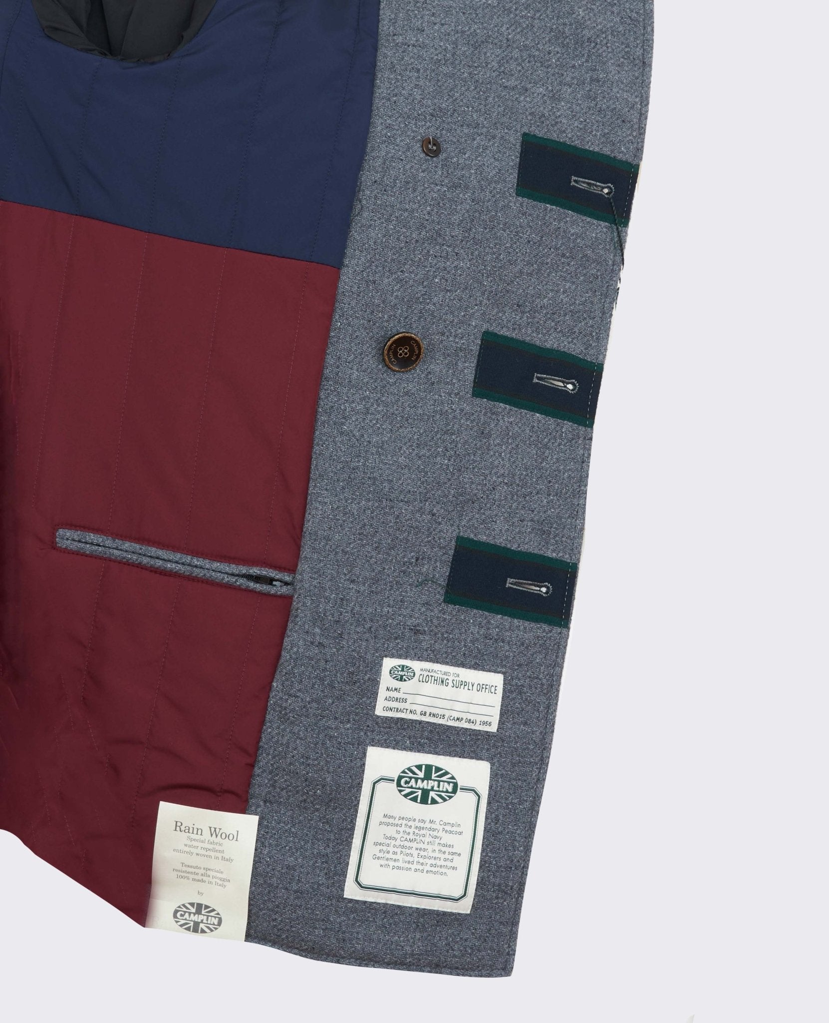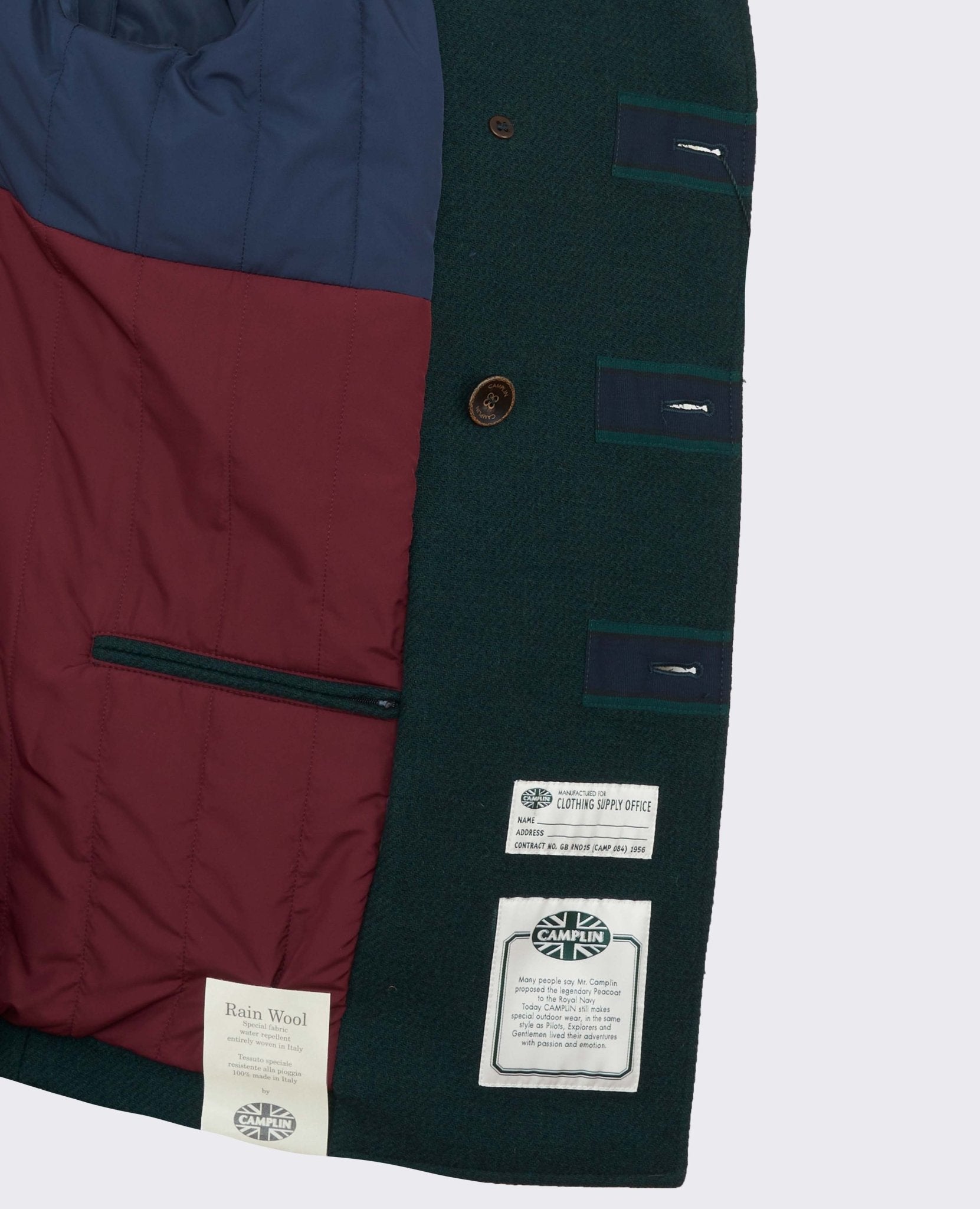 Peacot Island double-breasted model in three colors padded inside.