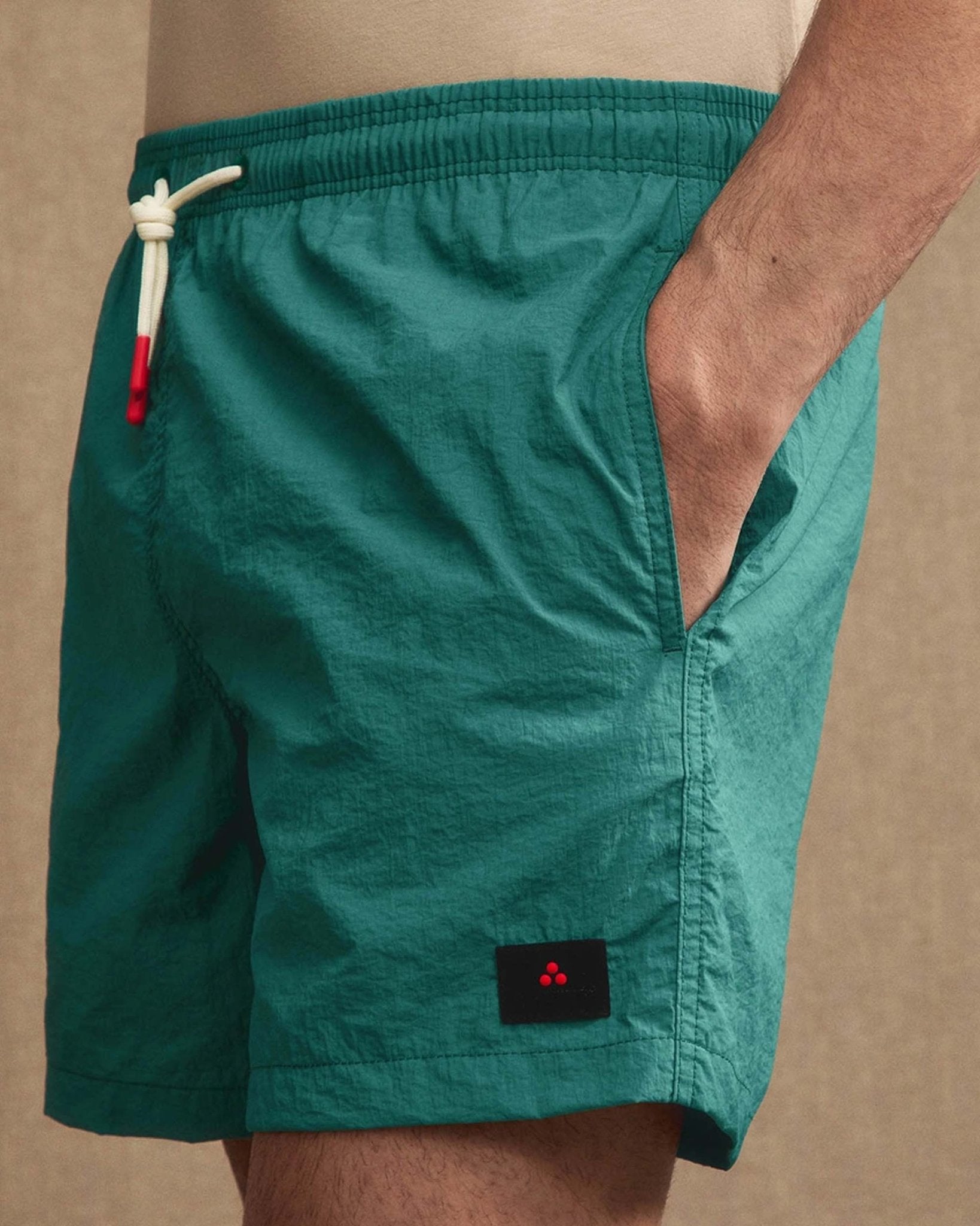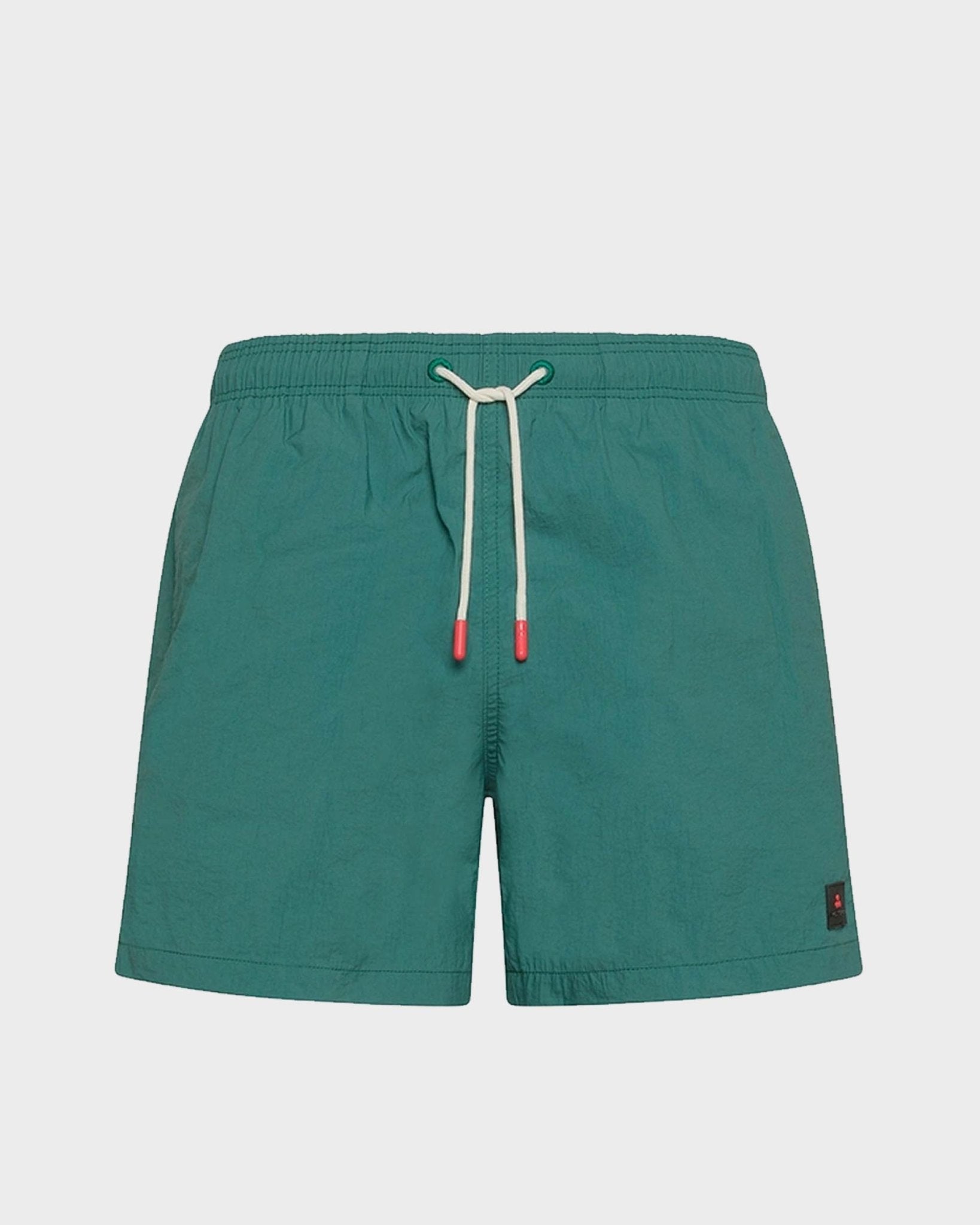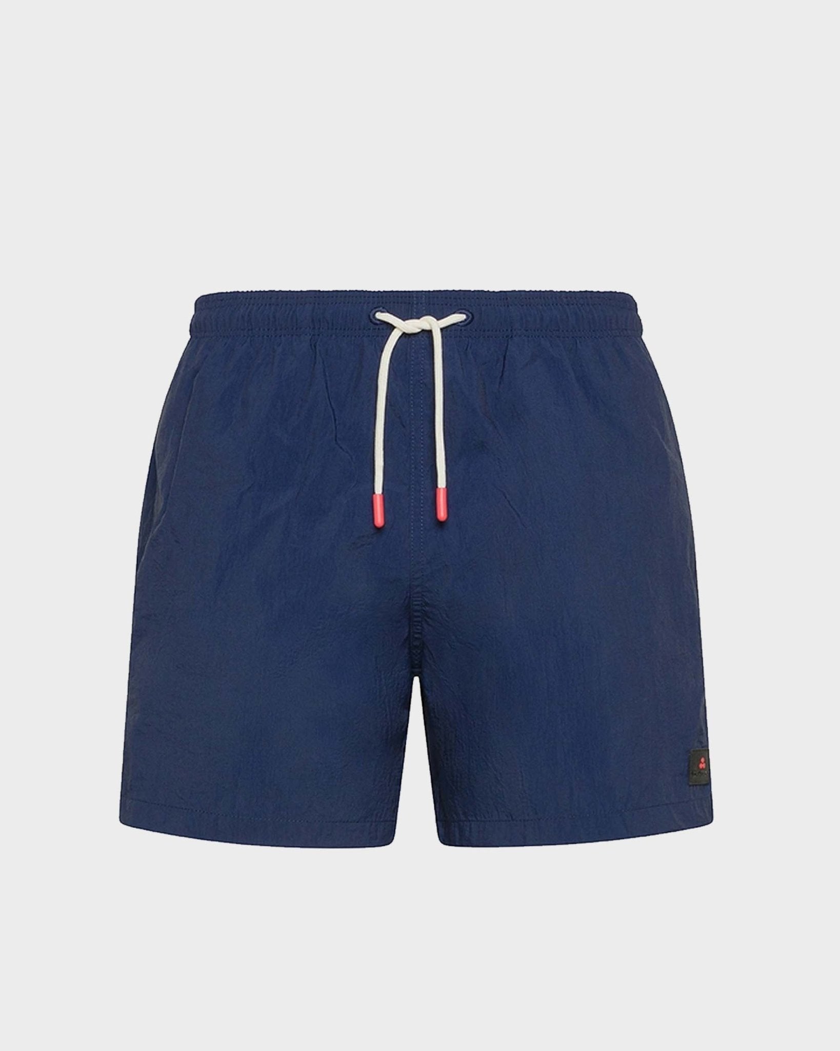 Men's swimsuit with drawstring waist and comfortable fit. Double side welt pocket and flap pocket on the back. Peuterey logo applied on the thigh.