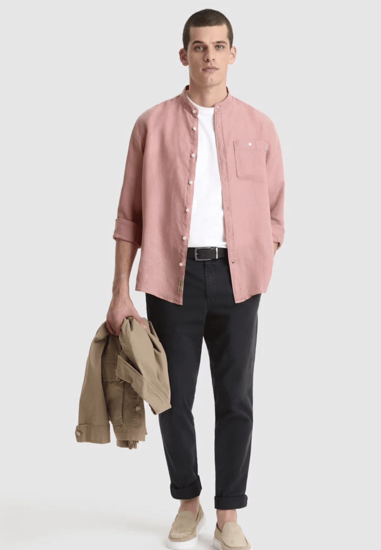 Model BAND COLLAR LINEN SHIRT CFWOSI0079MRUT2558 in 5 colors.