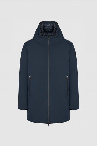Light and comfortable, yet offering maximum warmth. Fixed hood, zip closure, and two side pockets. Water-resistant Bio finish stretch fabric.