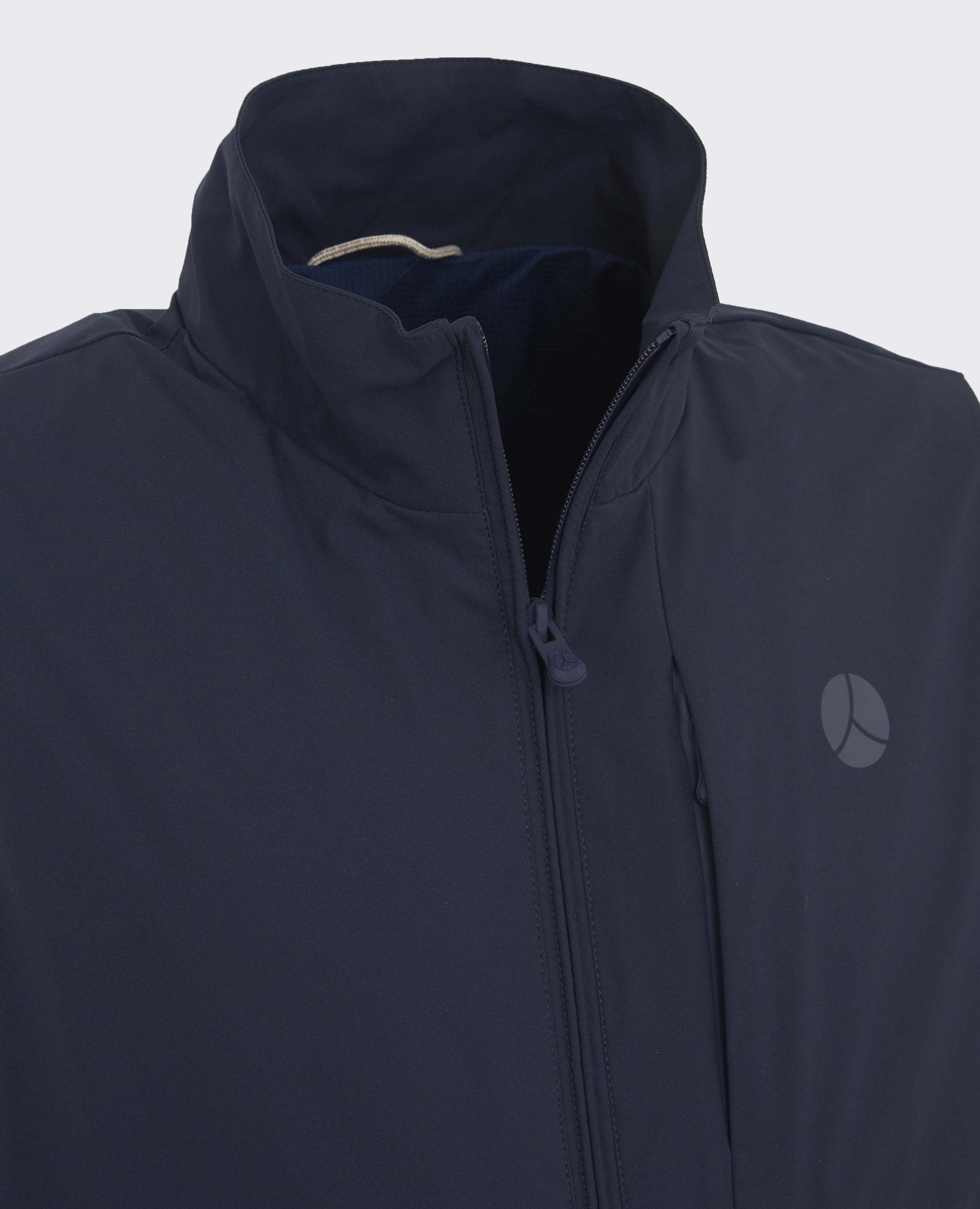 Double slider zip closure, technical fabric, three front pockets with zip, one of which is hidden on the chest.