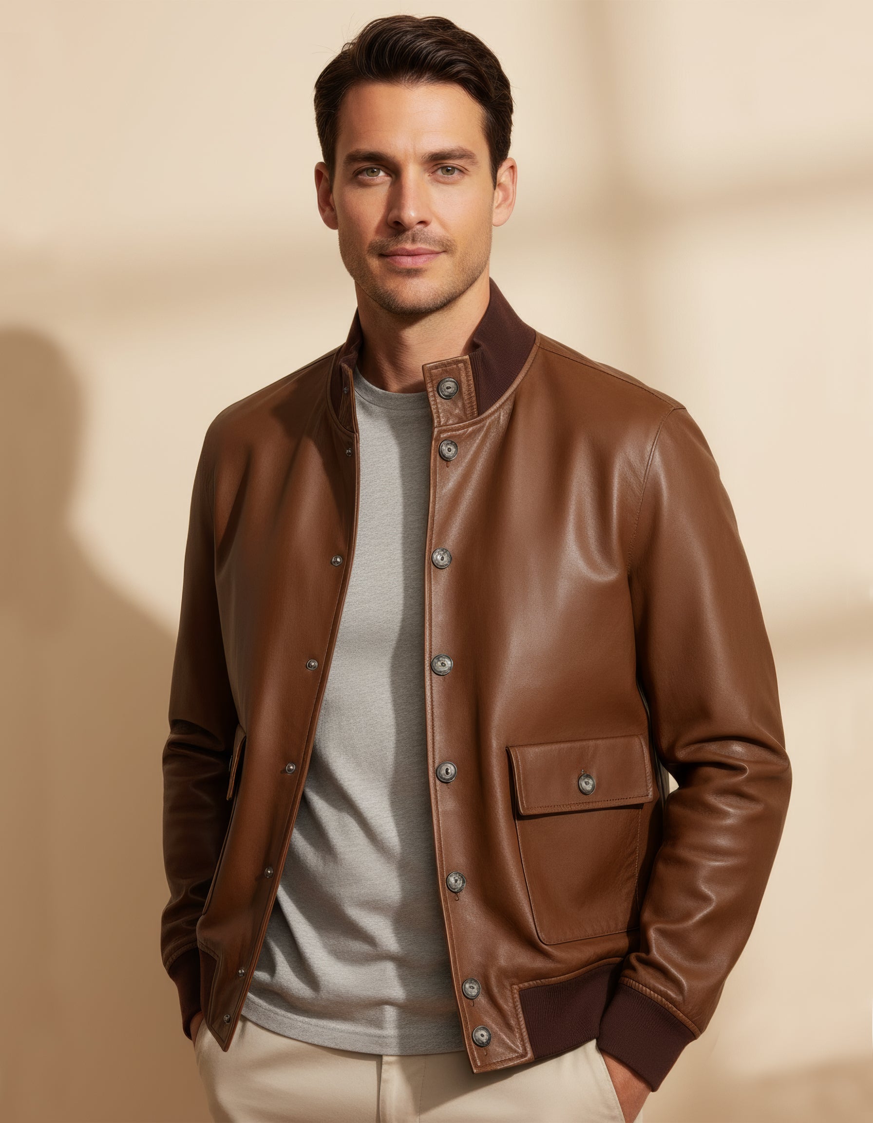 Giacca di Pelle Volfagli Uomo sfoderata perfetta per le mezze stagioni.