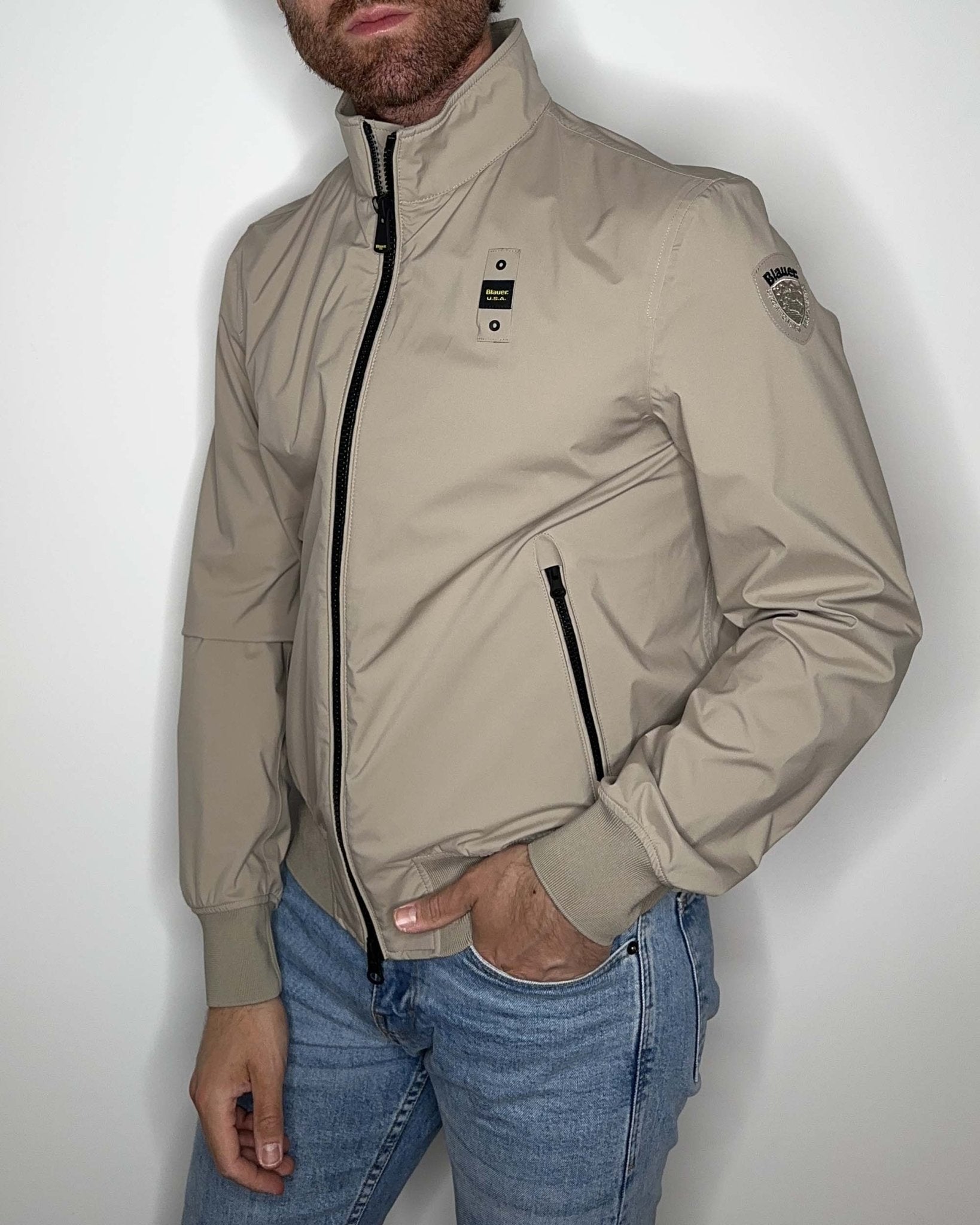 Blauer logo patch on left shoulder.