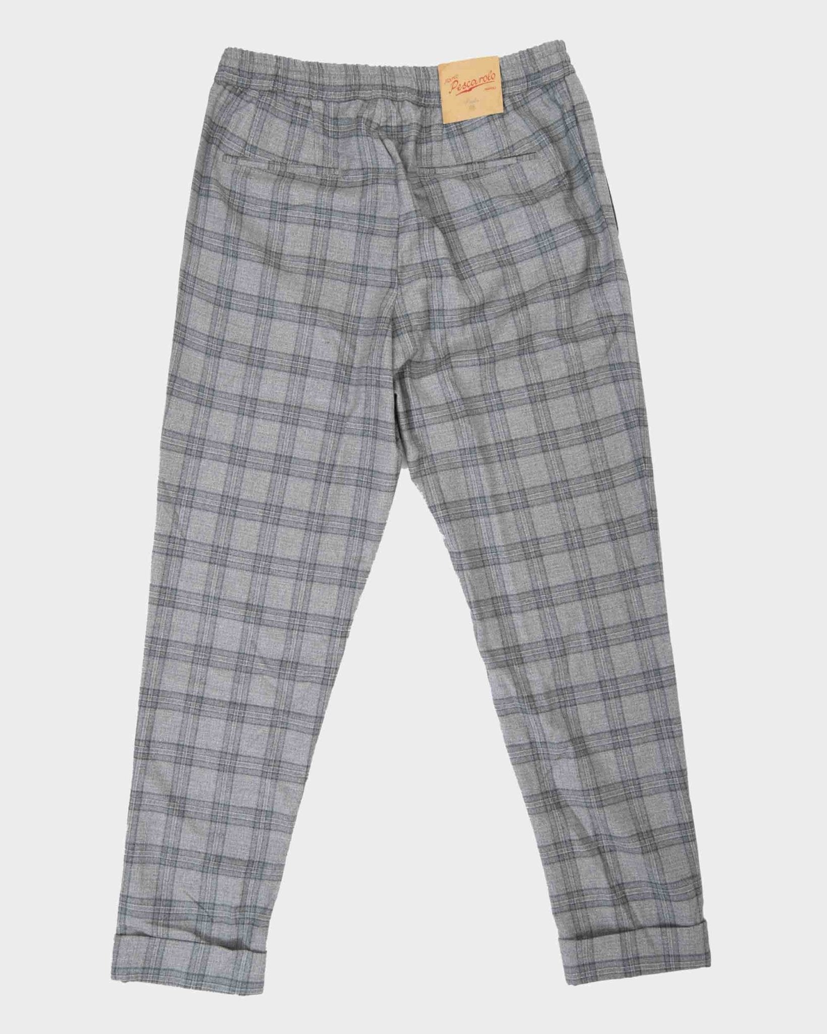 Elasticated waist, welt pockets, two back pockets and zip and button fastening.