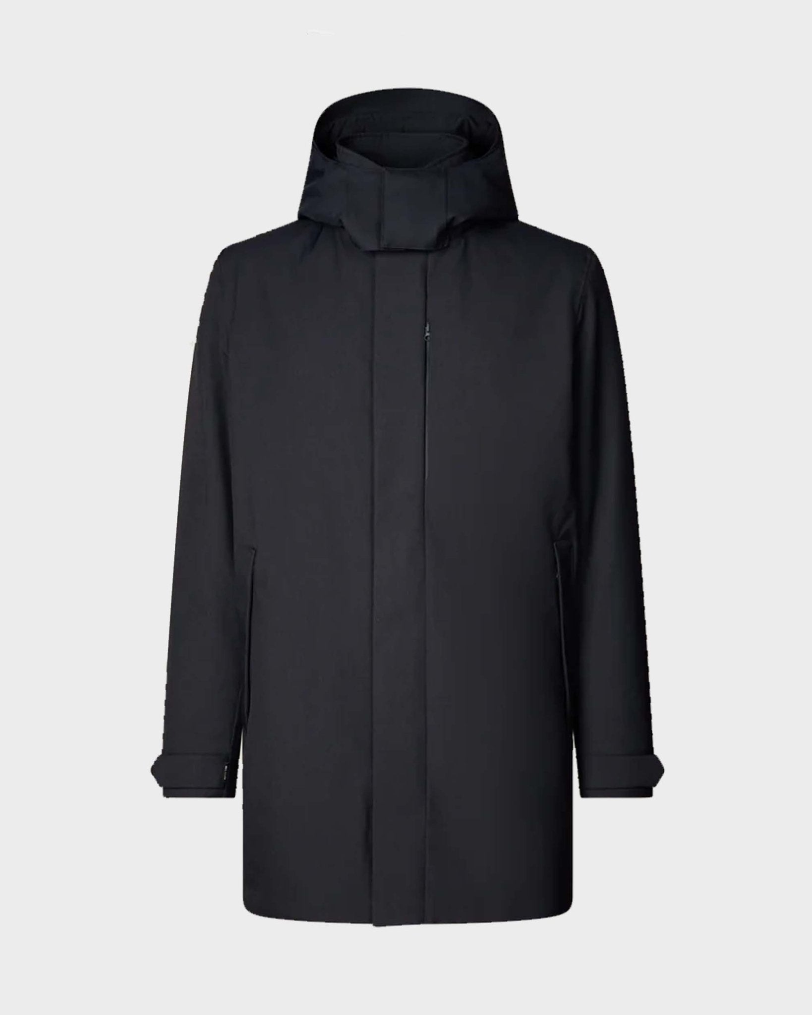 Cappuccio rimovibile, polsini regolabili e cuciture nastrate nella parte superiore. Le tasche e inferiori con zip, le tre tasche interne e la tasca zippata sul petto. Tiretto personalizzato e logo in rilievo sulla manica.