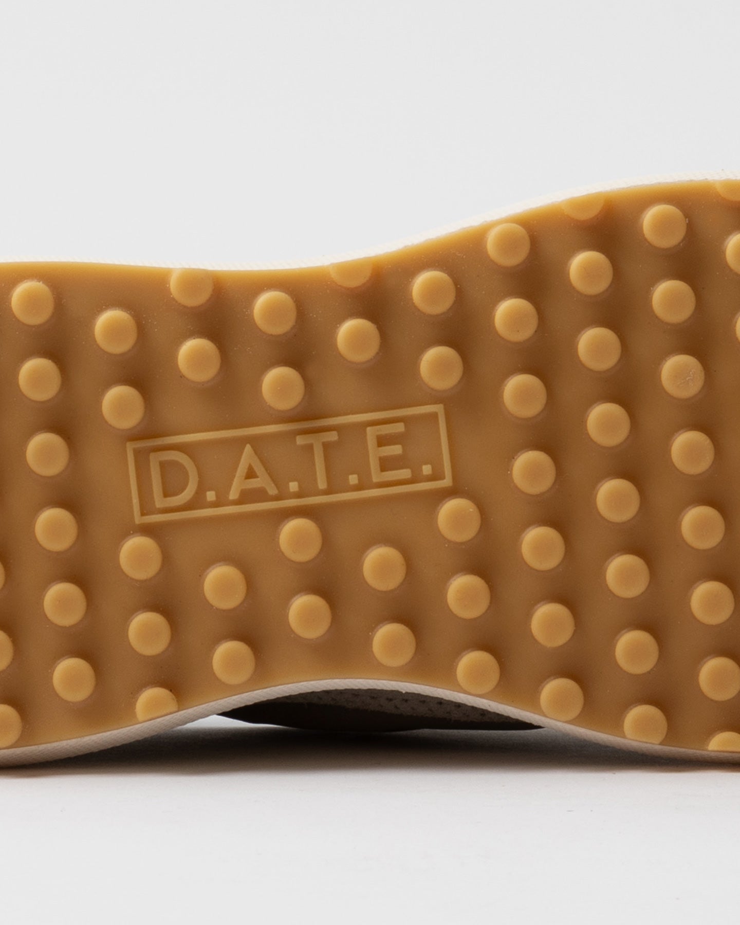 - Il logo quadrato D.A.T.E. è impresso nel talloncino in pelle.
