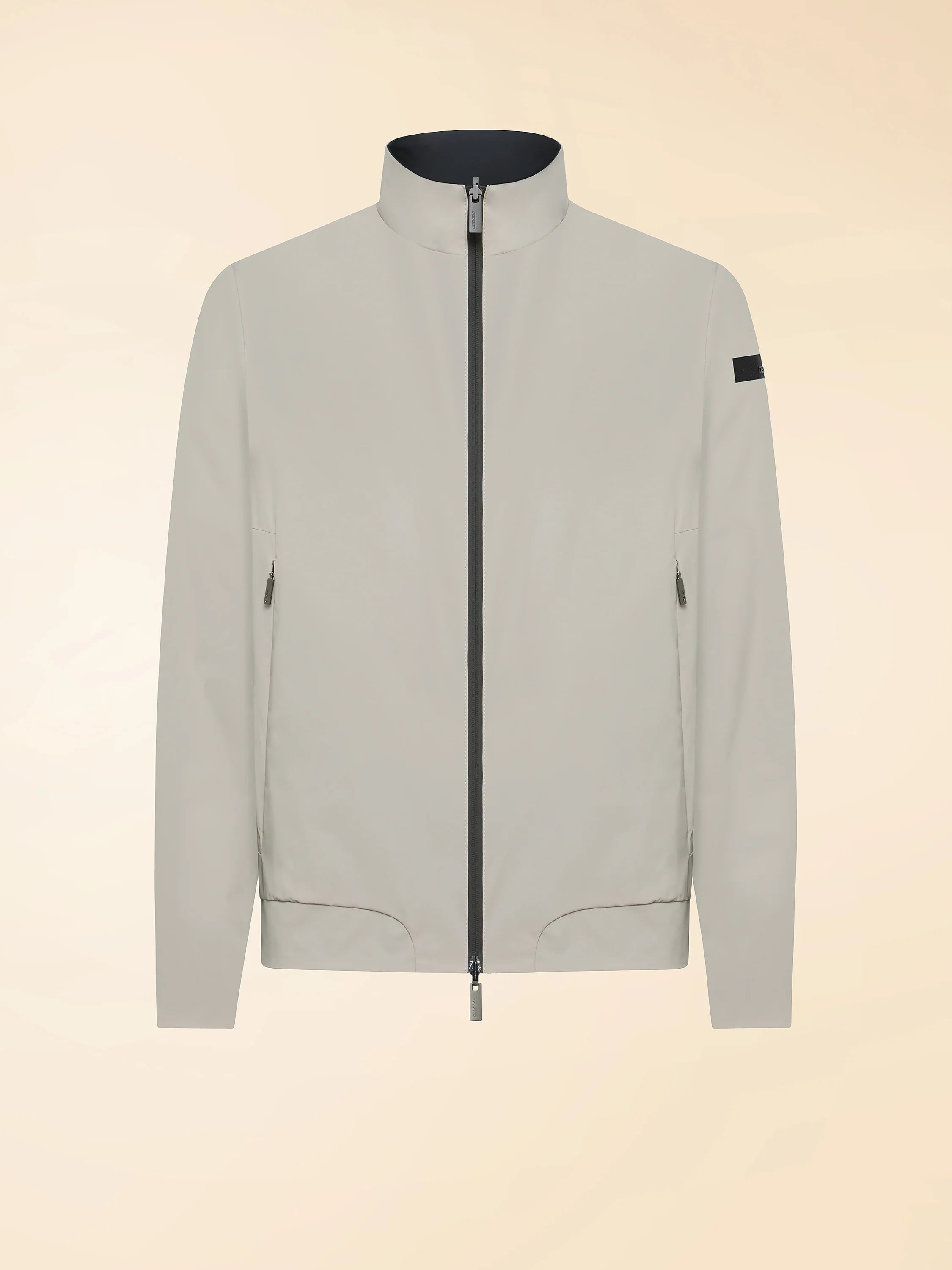 Bomber reversibile in tessuto stretch dal look opaco, leggero e traspirante. Chiusura con zip gommata a doppio cursore, tasche laterali con zip invisibili e logo a microiniezione nero sulla manica sinistra.