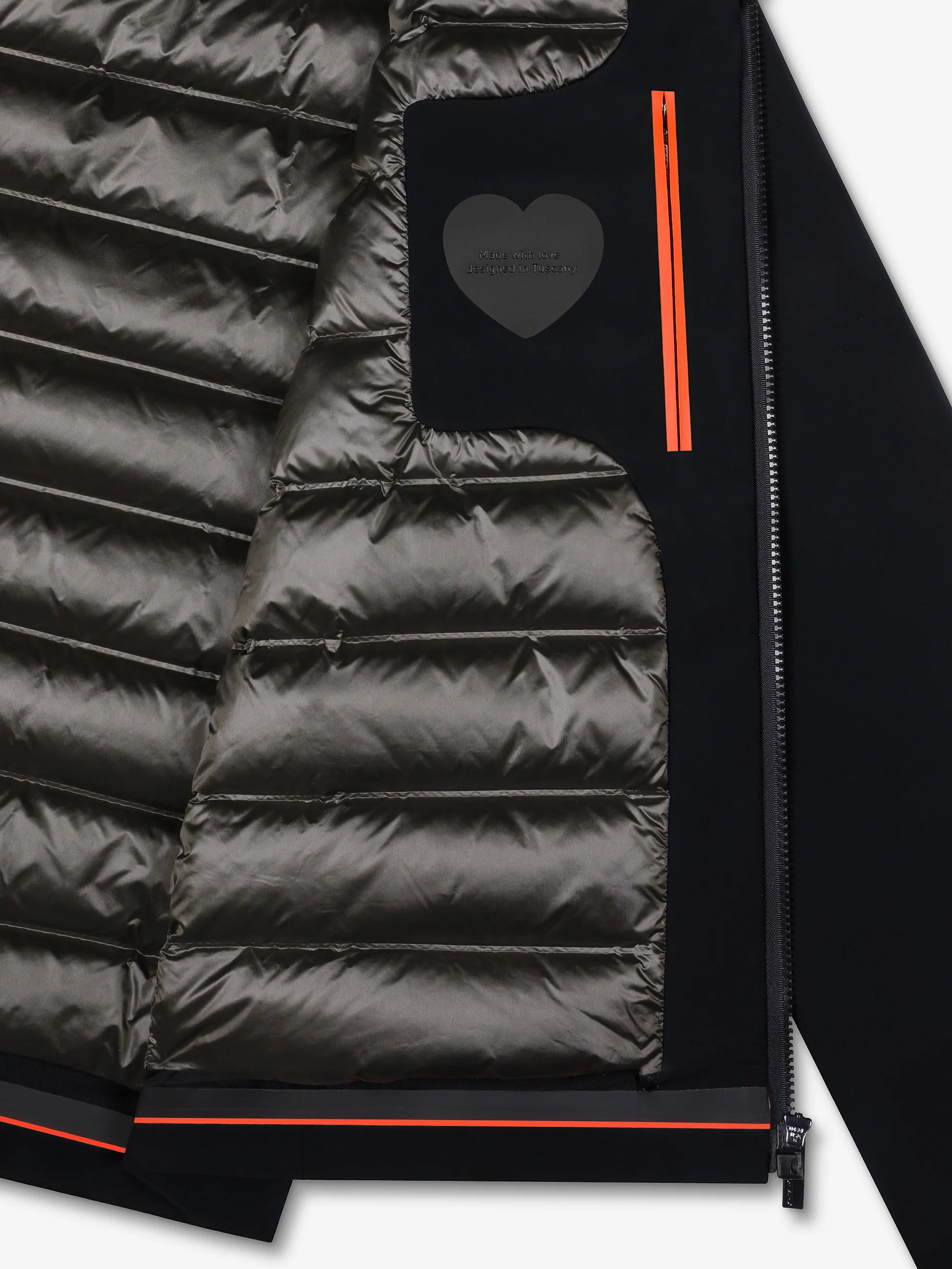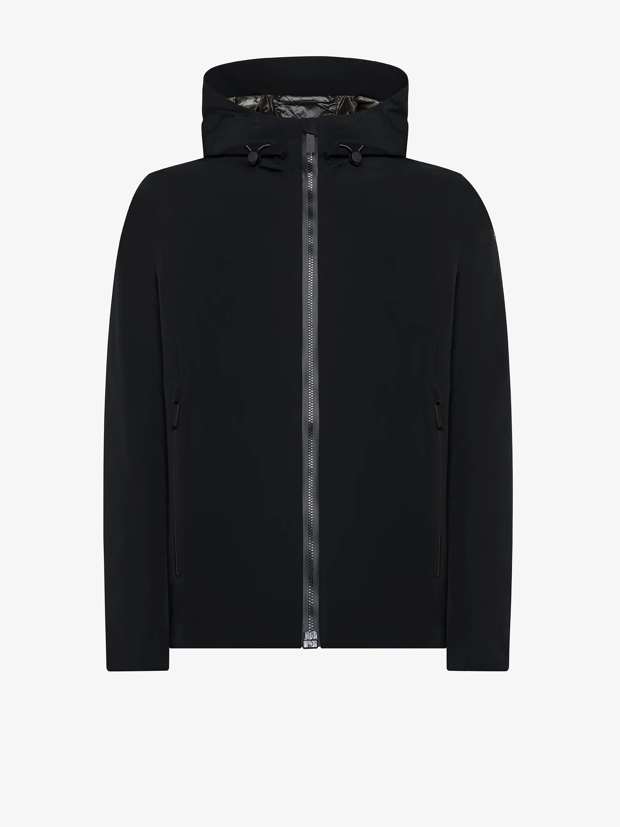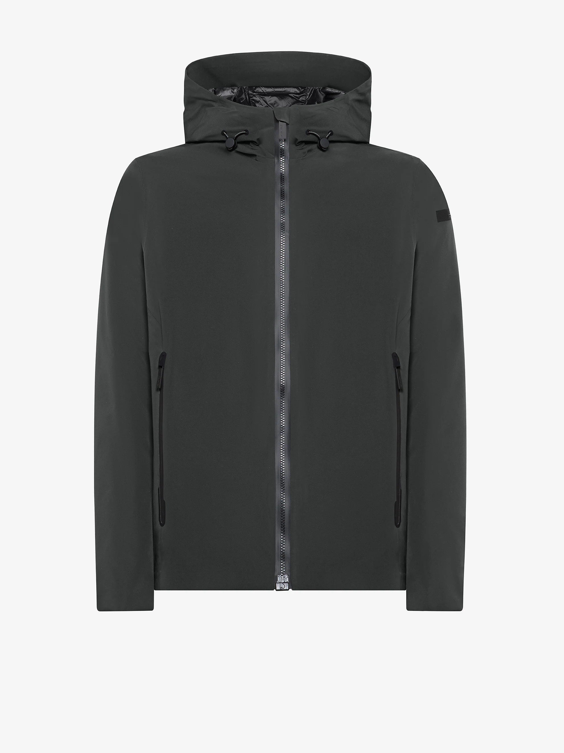 Caldo e leggero - fit asciutto - costruzione interamente termonastrata a prova di pioggia e di vento - look super opaco - zip a chiusura magnetica che sale a chiudere il colletto verticale e il cappuccio avvolgente imbottito, dotato di frontino e regolabile a cordini elastici - ampie tasche laterali con zip - imbottitura in piuma d'anatra 90/10 - interno con taschino con zip.