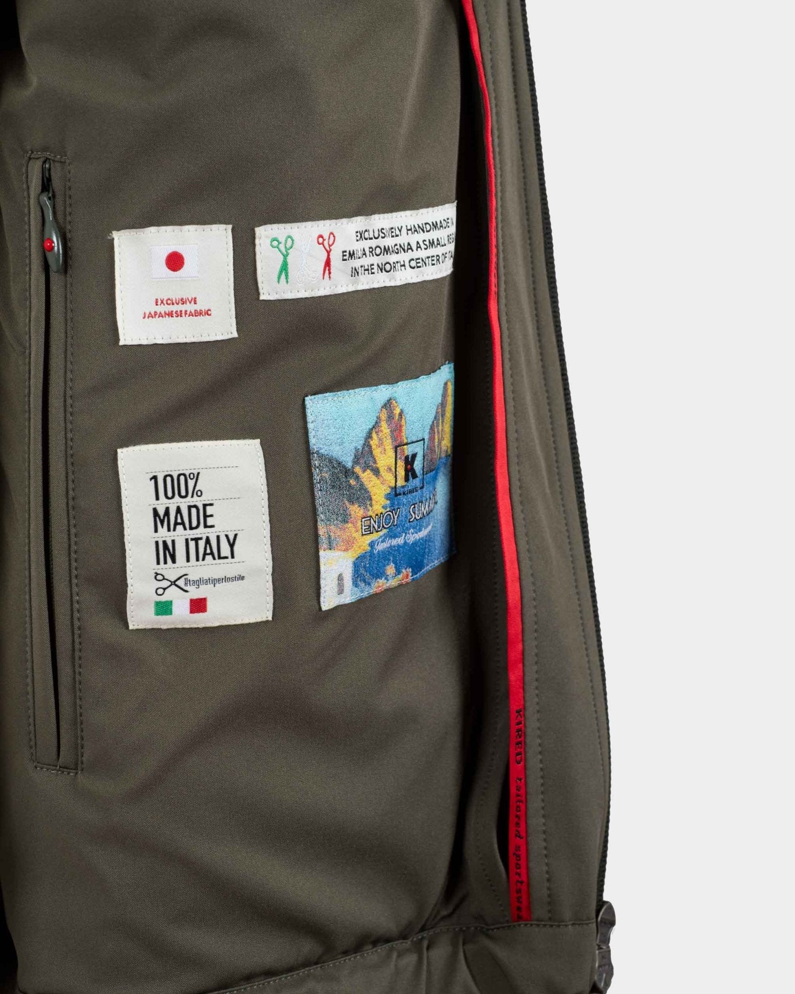 Made with breathable, rainproof and windproof Climatek technology, it features a fixed hood, double slider zip closure, double side pocket, cuffs with adjustable buttons and internal pocket. 100% Handmade in Italy with exclusive Japanese fabrics.