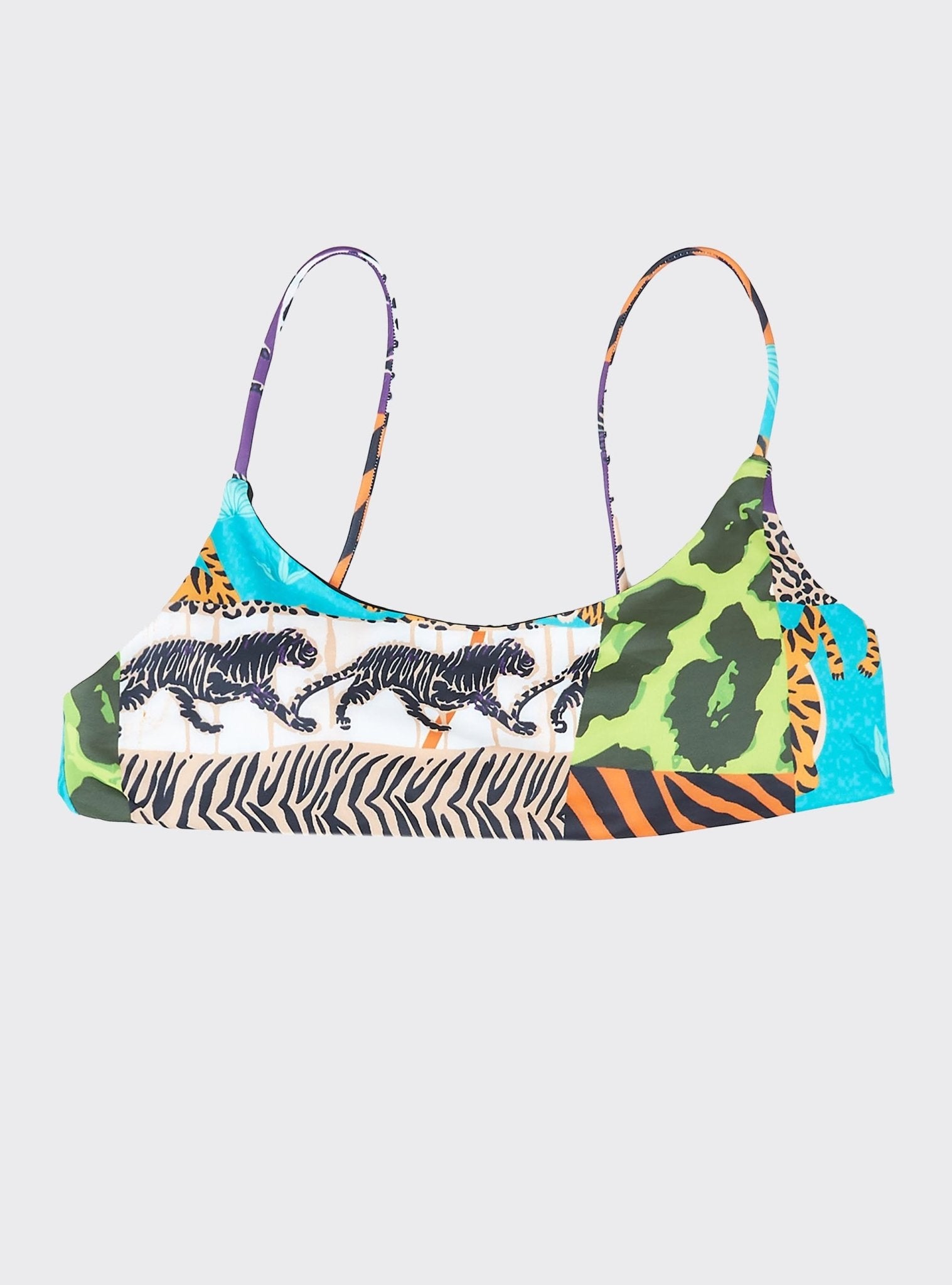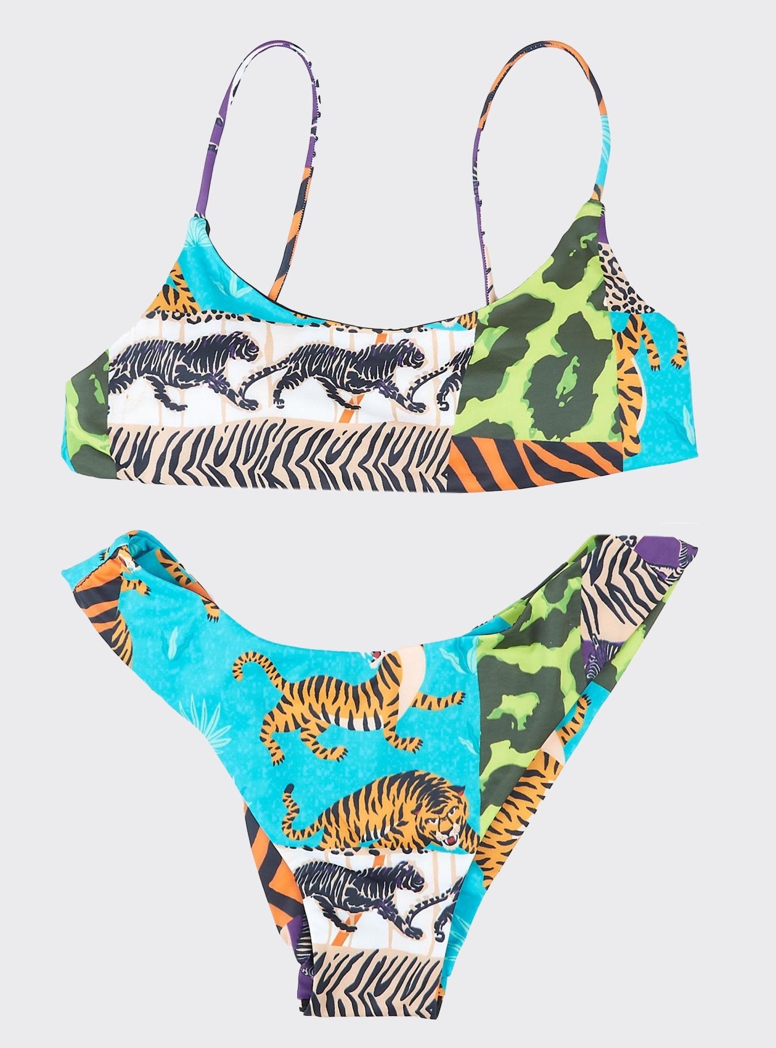 Modèle Animalier deux pièces avec bretelles et bonnet légèrement rembourré.