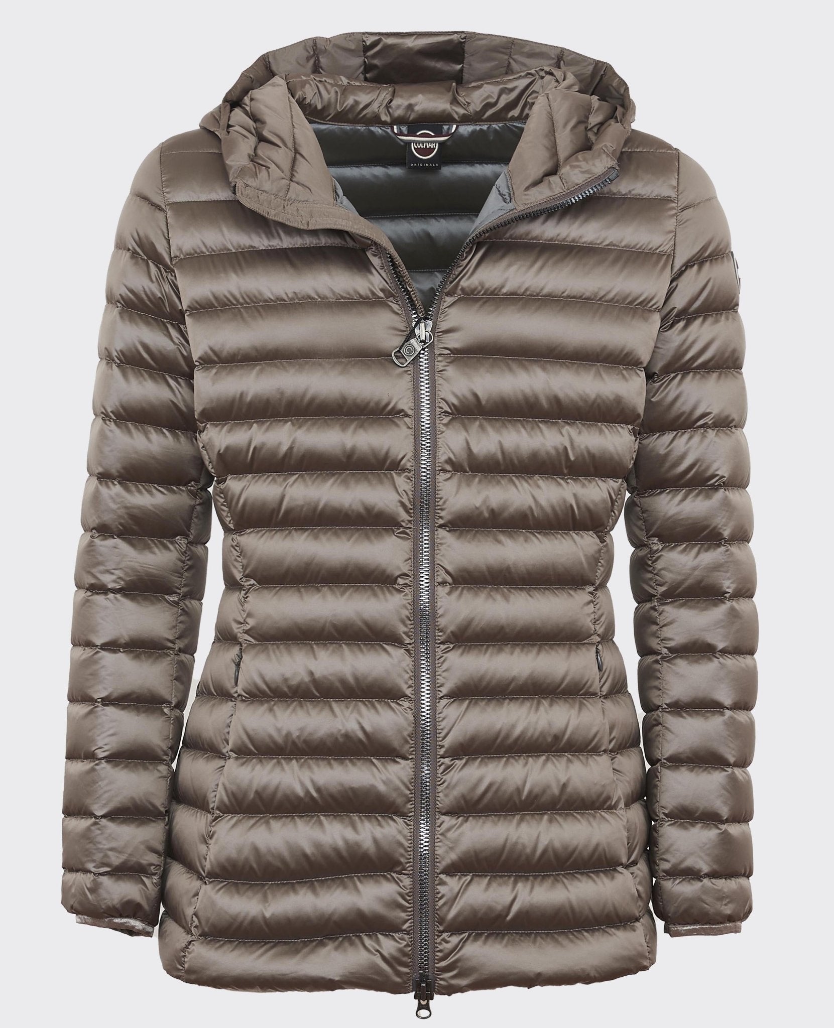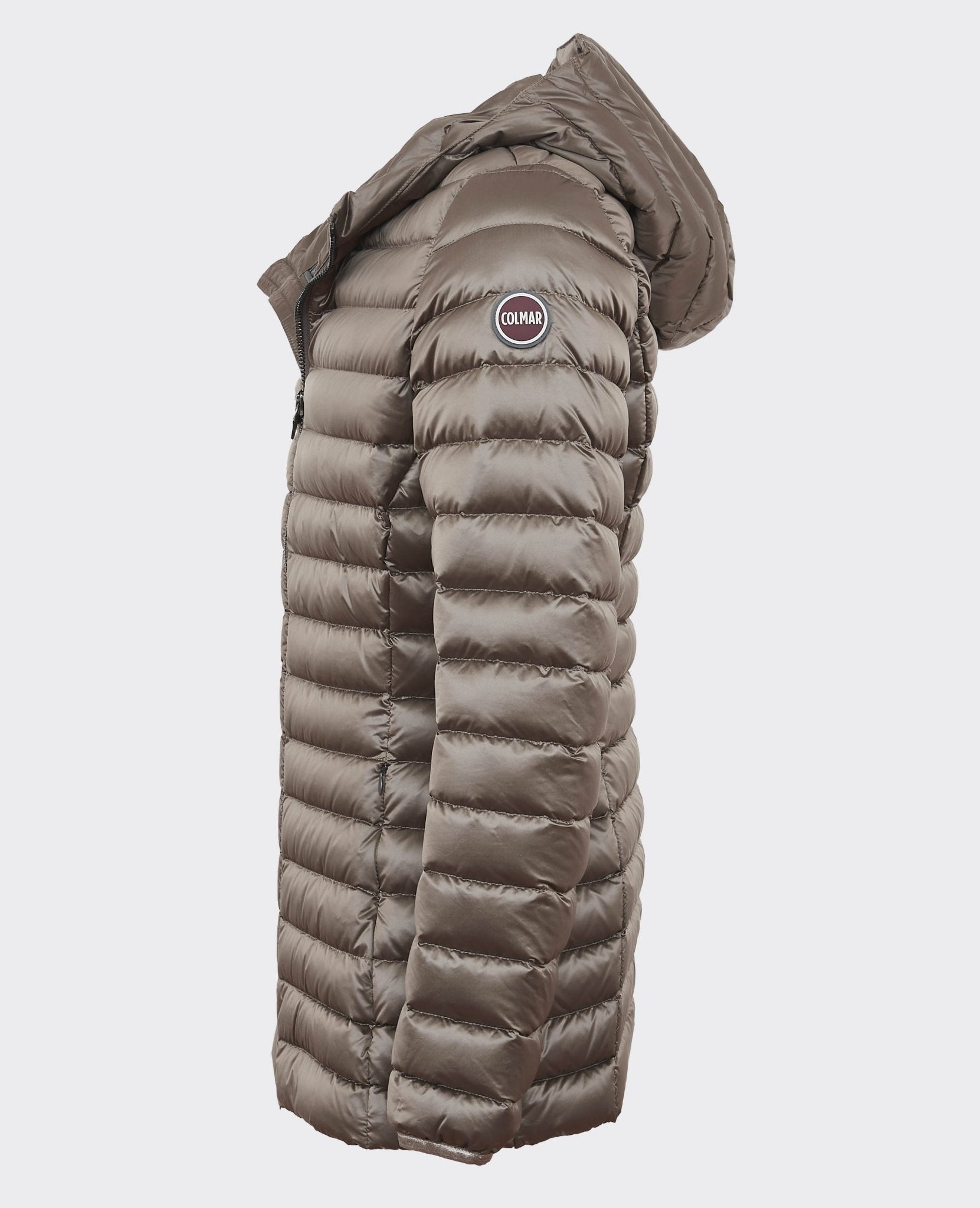 Capuche fixe, fermeture zippée intégrale, double poche latérale et logo Colmar appliqué sur l'épaule gauche.