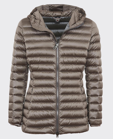 Modèle 2252 5WG IN22 de longueur moyenne en deux variantes de couleur. Rembourrage en plume naturelle, tissu recyclé hydrofuge à effet irisé.