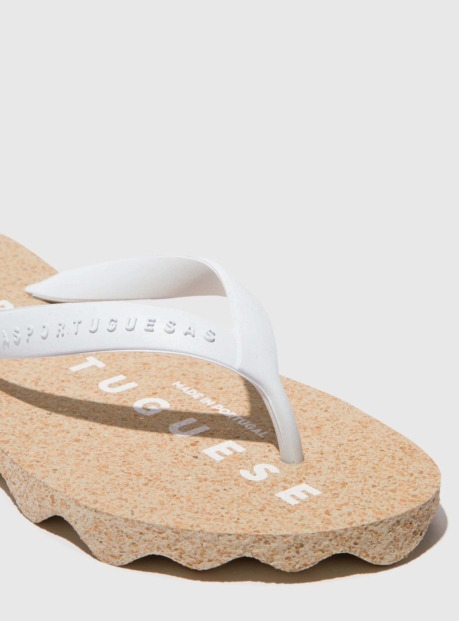 Modèle ASPP018109000 BASE_L avec semelle en liège naturel et bride avec logo en relief.
