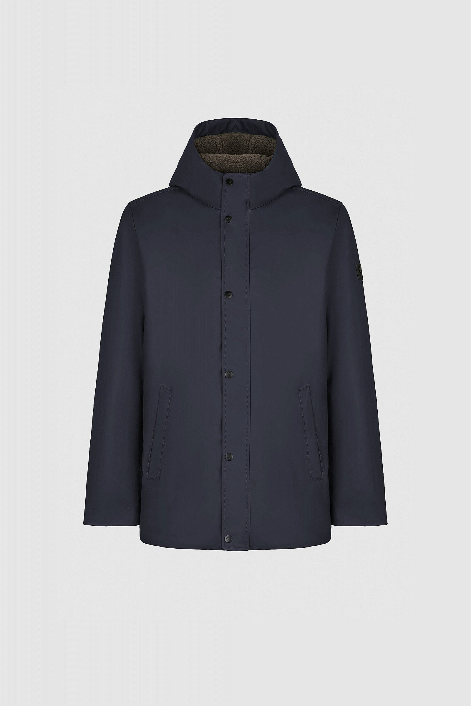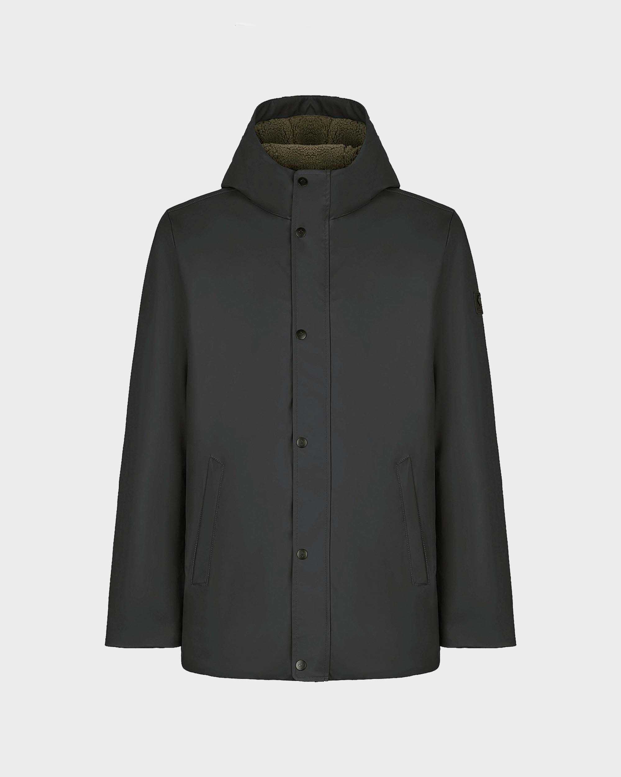 Estetica essenziale e contemporanea. L'interno in fake sherpa la rende calda e confortevole, perfetta per l'inverno metropolitano. Chiusura con zip e bottoni.