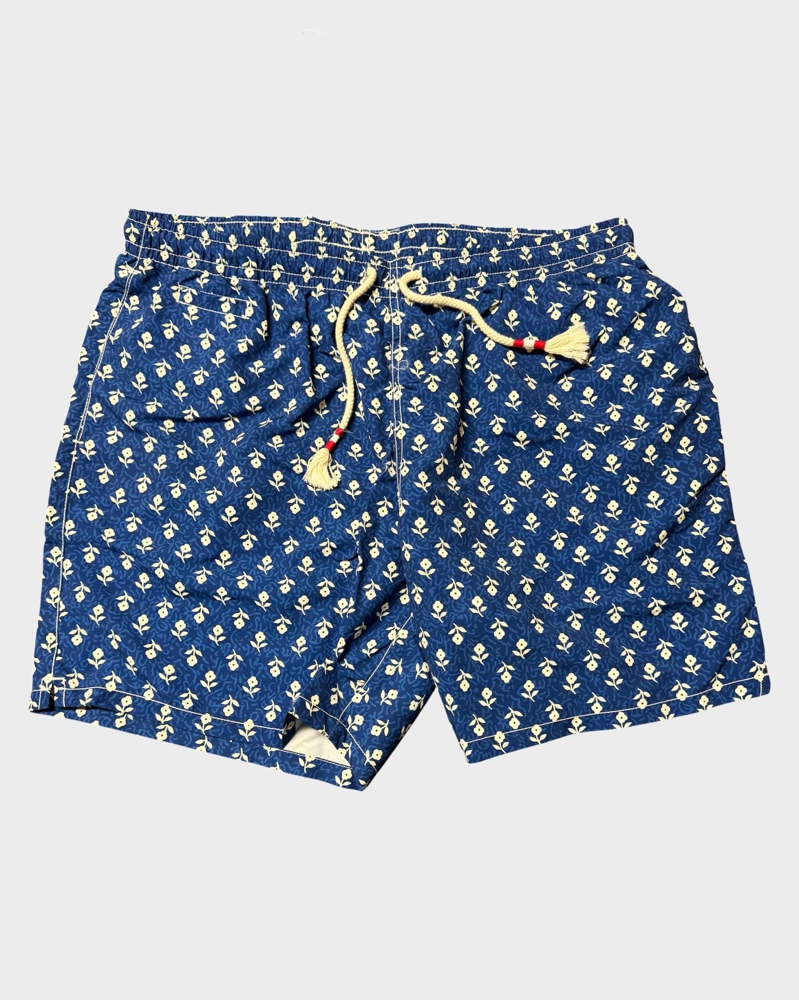 Costume da bagno uomo con elastico in vita, laccio in cotone, tasche ai lati e tasca sul retro.